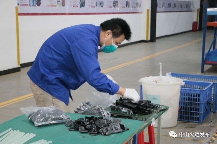 2月17日,在健康基地園區(qū)企業(yè)——廣東英得爾實業(yè)發(fā)展有限公司的車間里,機(jī)器的轟鳴聲再次響起,70名工人戴著口罩,熱火朝天地開足馬力生產(chǎn)設(shè)備。氣泵聲、電鉆聲、馬達(dá)聲等交織在一起,組成了一曲華麗的機(jī)器交響樂。