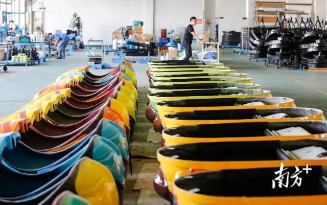 在金馬游樂港口鎮(zhèn)廠區(qū)的生產車間內,一些制作完成的碰碰車外殼碼放整齊,等待出庫。回溯過去30余年,這個小小的游藝車里承載了“金馬”的創(chuàng)業(yè)史。