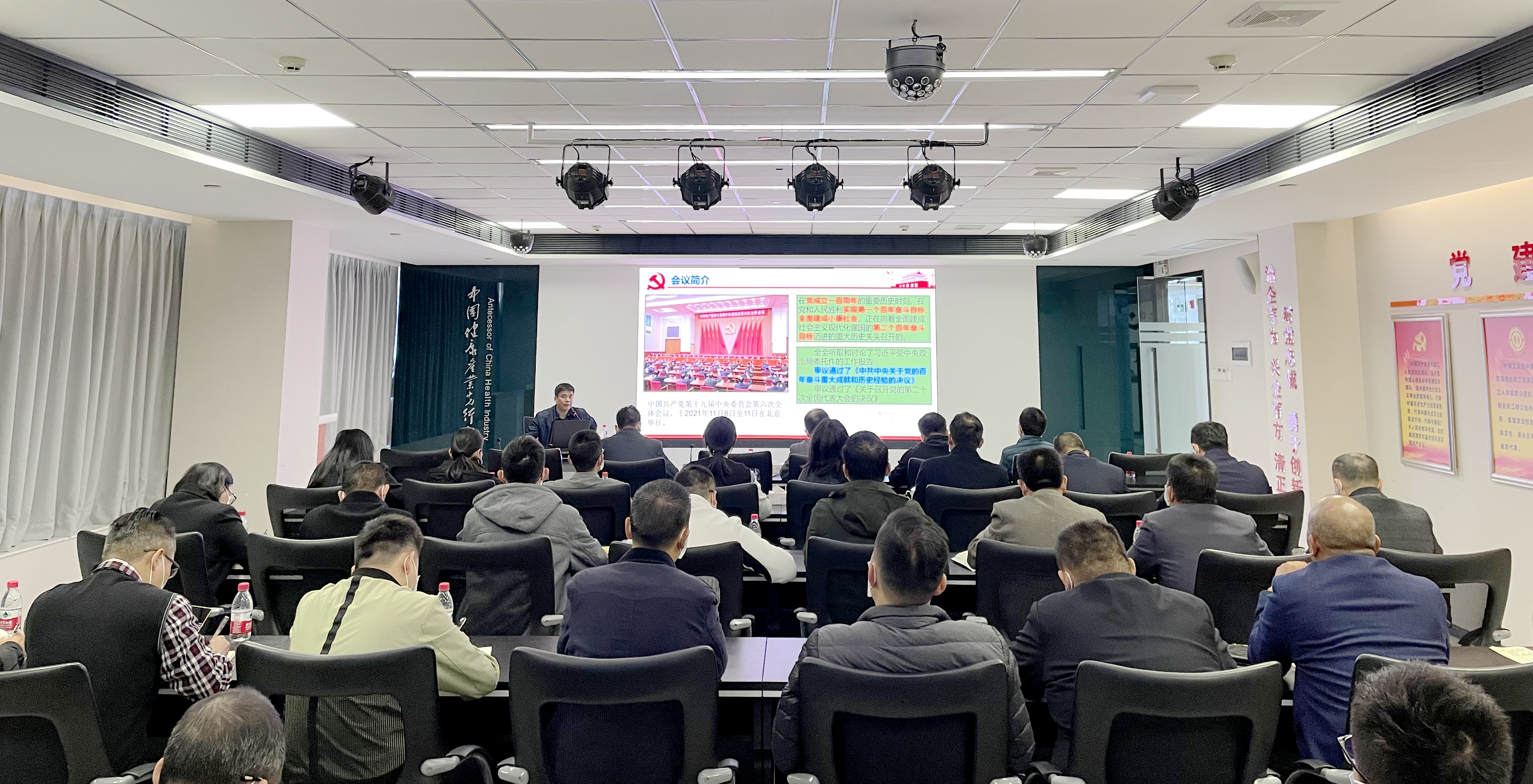 12月2日,健康基地園區(qū)黨委召開學習貫徹黨的十九屆六中全會精神宣講會,中山市委宣講團朱權教授受邀出席宣講,集團全體黨員、園區(qū)兩新支部書記、流動黨員代表參加會議。
