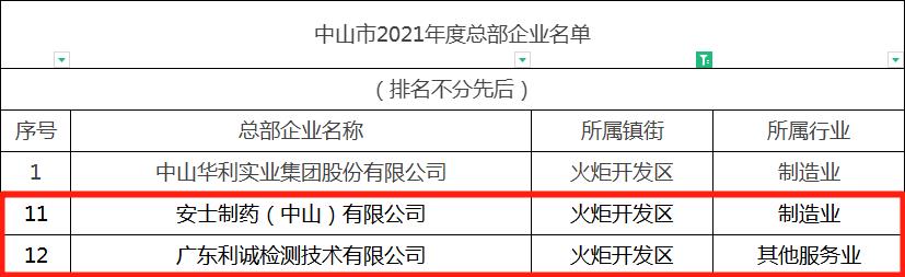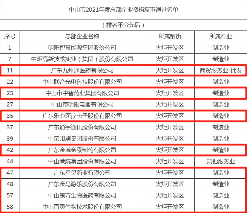 中山市 2021年度總部企業(yè)名單出爐, 健康基地園區(qū)10家企業(yè)上榜