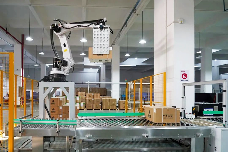 走進自動化生產車間,環(huán)形的抽真空產線上僅有一名員工操作;巨大的機械臂不斷上下?lián)]舞著,將一箱箱成品整齊堆放入庫。“這邊是我們的產品測試產線,運轉一圈需要1.5小時,以前這條線需要很多人操作,而且每換一種產品就要換一條測試線,軟件也要重新調整,現在進行自動化改造后,系統(tǒng)可以自動匹配產品型號,實現混線生產。”主機廠產品事業(yè)部總經理劉洋介紹,2021年,企業(yè)投入3000萬元打造了這間自動化廠房,如今車間每小時的產能可達80至100臺,相比2021年前提升了近一倍。