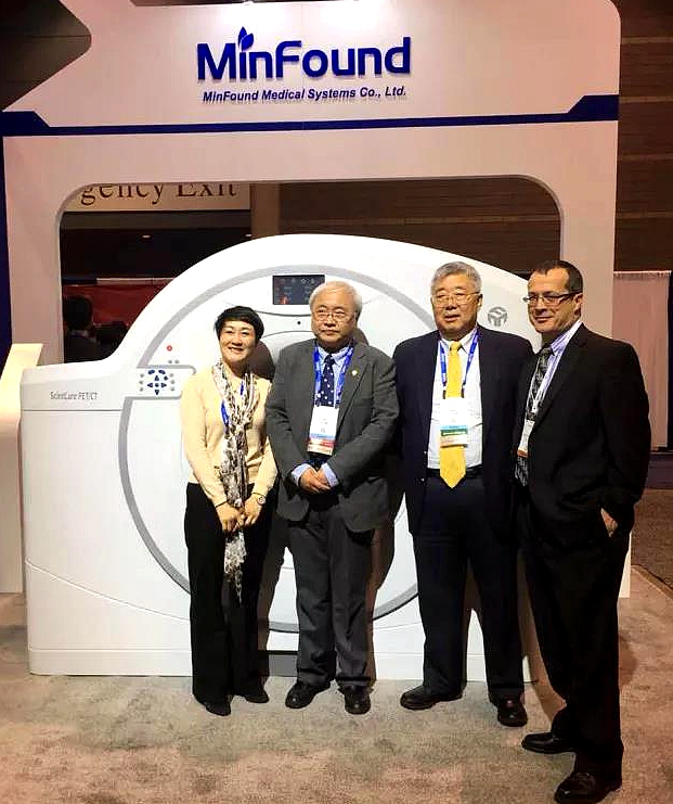 1126日,健康基地園區(qū)企業(yè)明峰醫(yī)療中國團隊和旗下美國FMI科技公司團隊赴美國芝加哥麥考密克展覽中心參加北美放射學會年會(Radiological Society of North America, RSNA)。中國醫(yī)學裝備協(xié)會理事長趙自林、中華醫(yī)學會放射學分會主任委員金征宇、國家衛(wèi)計委大型醫(yī)療設備咨詢委員會主任戴建平參會并參觀了明峰醫(yī)療展臺。
