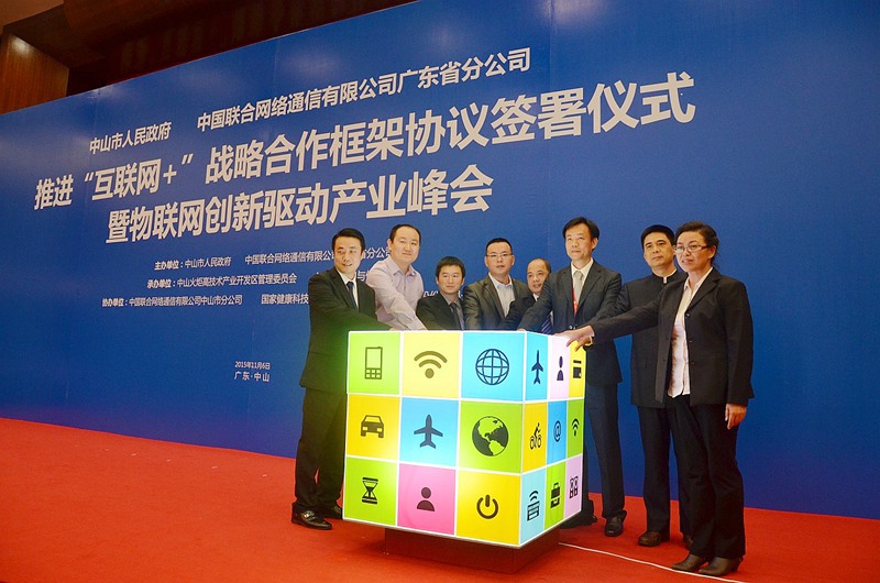 11月6日,由中山市政府、廣東聯(lián)通聯(lián)合主辦,火炬區(qū)管委會(huì)、中山市經(jīng)信局承辦,國(guó)家健康基地、廣東司南物聯(lián)股份有限公司協(xié)辦的“推進(jìn)‘互聯(lián)網(wǎng)+’戰(zhàn)略合作框架協(xié)議簽署儀式暨物聯(lián)網(wǎng)創(chuàng)新驅(qū)動(dòng)產(chǎn)業(yè)峰會(huì)(中山)”在市政府會(huì)議中心舉行。中山市委書(shū)記薛曉峰、中山市委常委、火炬區(qū)黨工委書(shū)記、翠亨新區(qū)黨工委書(shū)記侯奕斌、中山市副市長(zhǎng)高瑞生以及國(guó)家健康基地總經(jīng)理方迎、司南物聯(lián)網(wǎng)總經(jīng)理張力出席會(huì)議。